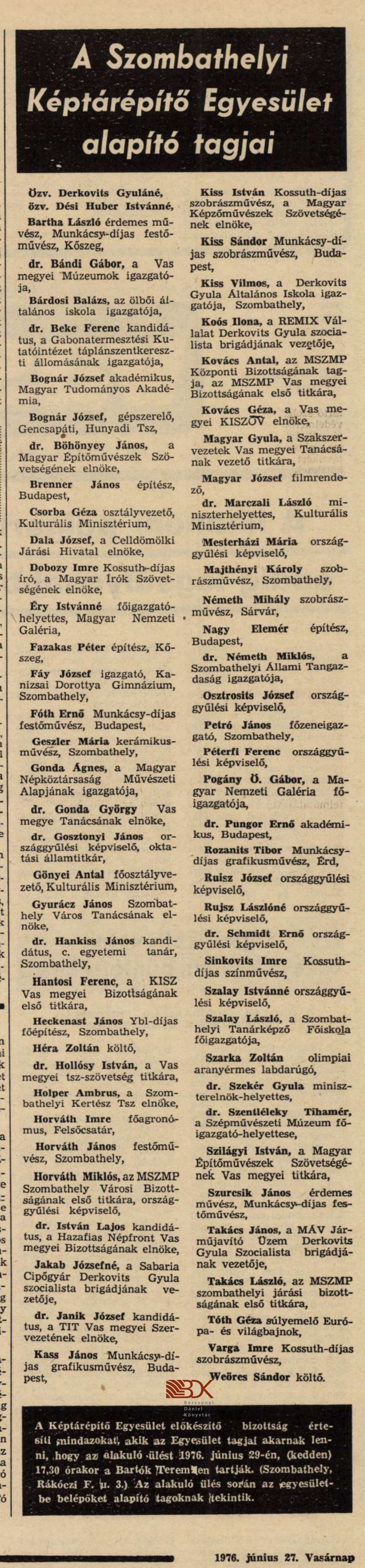 A Szombathelyi Képtárépítő Egyesület alapító tagjai. - 1976. jún. 27., 2. o.