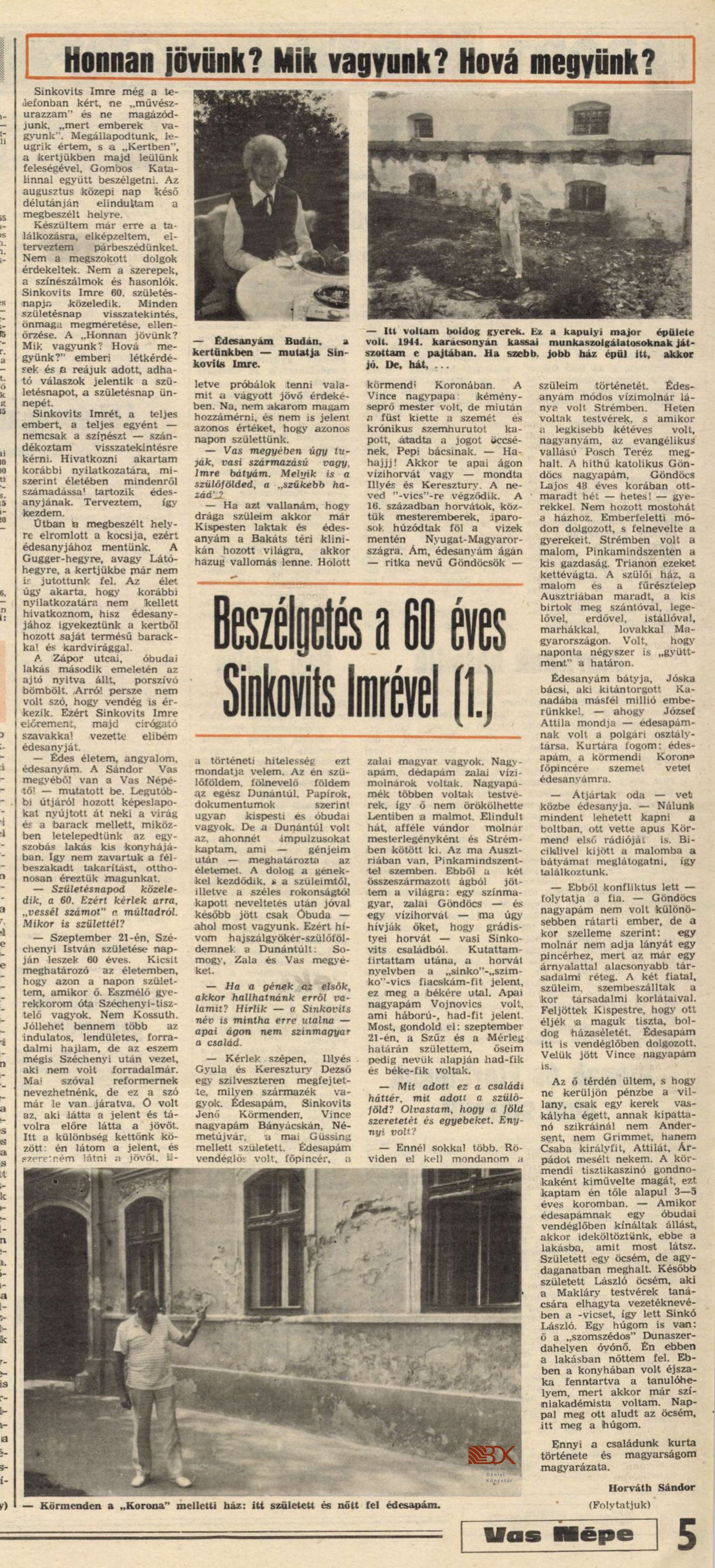 Honnan jövünk? Mik vagyunk? Hová megyünk? Beszélgetés a 60 éves Sinkovits Imrével (1.) - 1988. szept. 19., 5. o.