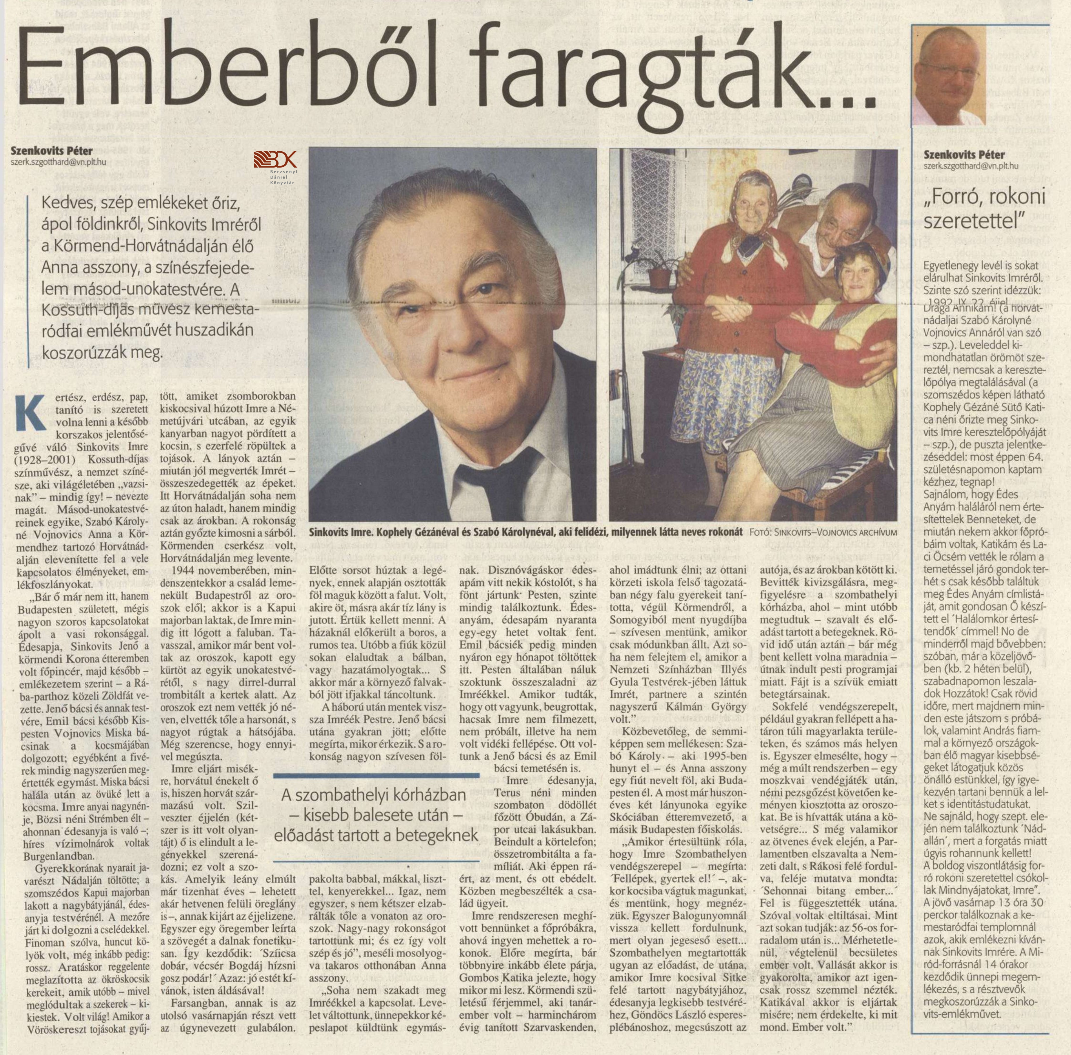 A nemzet színészéért. Sinkovits Imre emlékét őrzik és ápolják. - 2002. márc. 28., 4. o.