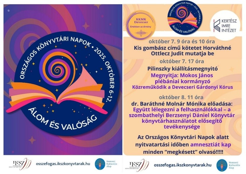 A Berzsenyi Dániel Könyvtár 2025-ben is csatlakozott a programsorozathoz: szakmai nap, könyvbemutató, író-olvasó találkozó, kiállításmegnyitó, éjszakai nyitvatartás és zenés program várta az érdeklődőket.