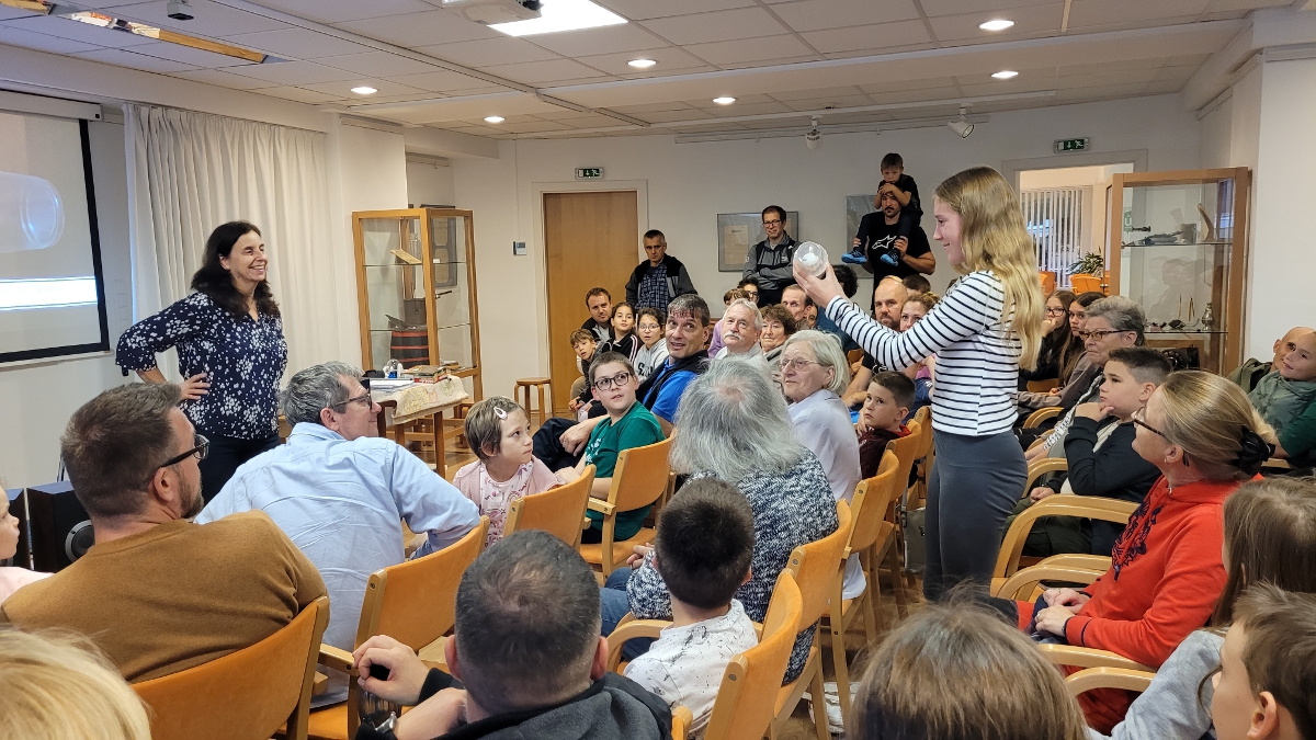 Október 10-én űrkalandot ígértünk minden korosztálynak: vetítettképes előadással és interaktív bemutatókkal vártuk az érdeklődőket a magyar űrhajós, Kapu Tibor „utazása” és a Magyar Űrkutatás Napja alkalmából. Az előadás házigazdái voltak Sinkó Andrea matematika–fizika és Kovacsics Bernadett biológia–kémia szakos tanárnők.