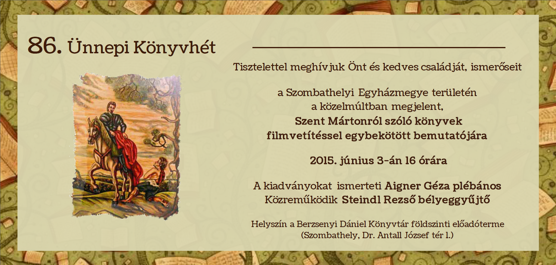 Szent Márton kötetek bemutatója Vendég: Aigner Géza |