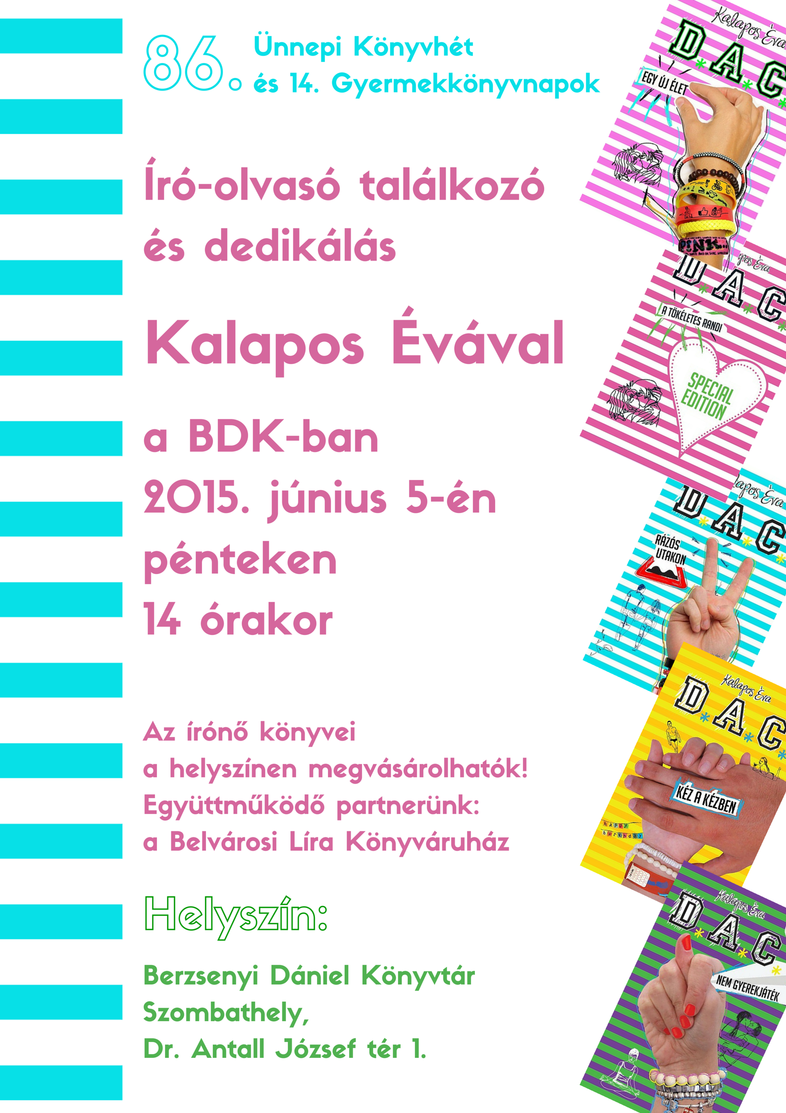 2015. június 4. csütörtök Helyszín: Berzsenyi Dániel Könyvtár, Szombathely, Dr. Antall József tér 1. Könyvheti Felolvashow – Felolvasópont a BDK-ban |