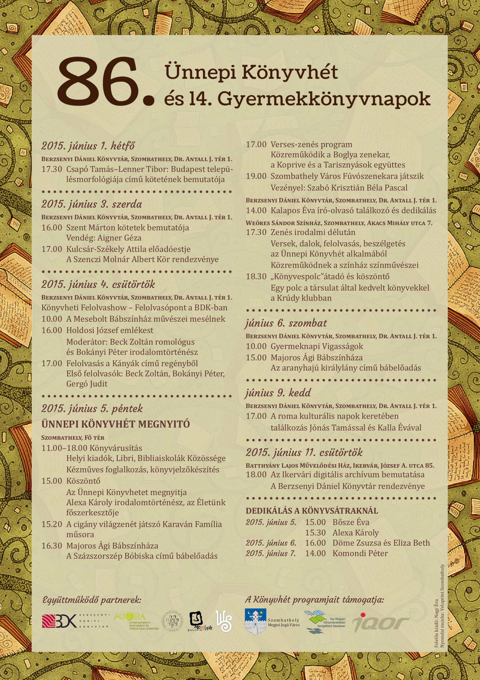 86. Ünnepi Könyvhét és 14. Gyermekkönyvnapok - 2015. június 1-11.