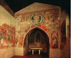 A XIII. század végén épült, a késő román és kora gótikus stílus jegyeit egyaránt magán viselő épületet Aquila János freskói tették világhírűvé. A freskók egy része az elmúlt évszázadok folyamán megsemmisült. A XIX. század második felében Gózon Imre és Rómer Flóris hívta fel a figyelmet az akkor nagyon rossz állapotban lévő templomra és az ott található falképekre. A szentély freskói közül, ha töredékesen is, de jól felismerhetők az evangélisták jelképei (oroszlán-Márk, sas-János, angyal-Máté, ökör-Lukács). A szentély északi falán felfedezhető Aquila önarcképe is.